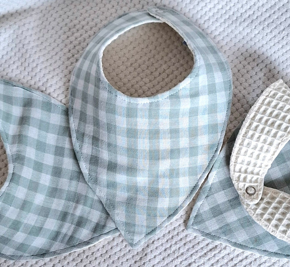 J'ai acheté un tapis à langer, 100% français, léger, doux, matière agréable, facile à ranger, motifs originaux et des bavoirs également 100% coton, très absorbants.